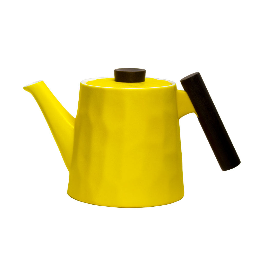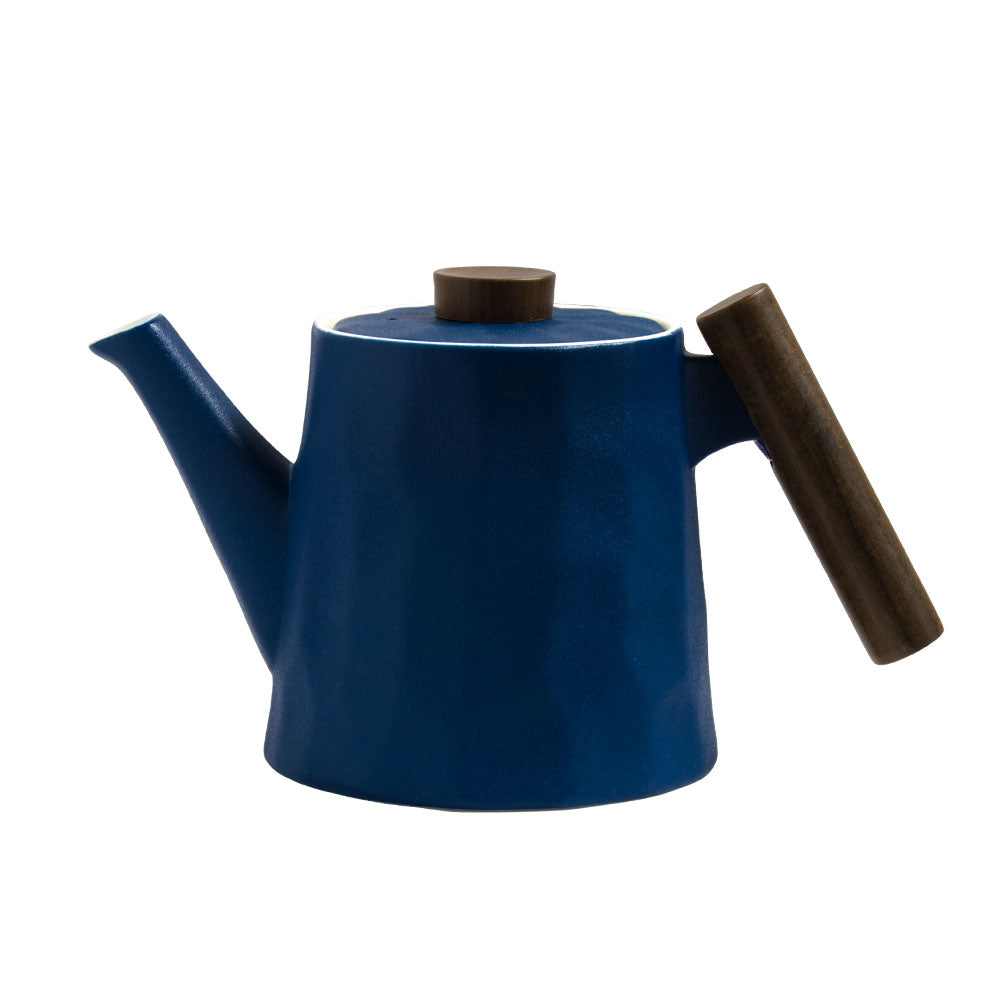 Moderne Teekanne aus Porzellan, mit Griff aus Holz