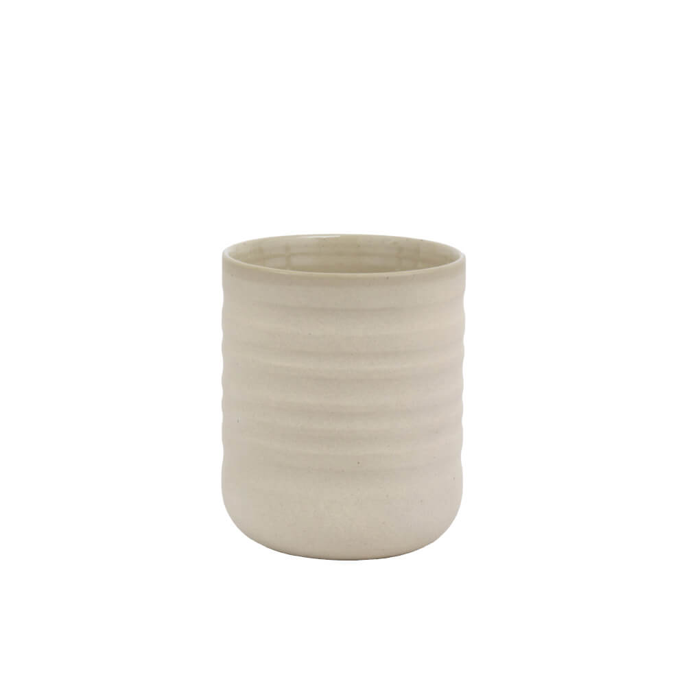 Das Teebecher-Set aus Porzellan vereint klare, schnörkellose Linien mit einer eleganten Riffelung auf der Außenseite. Diese dezente Struktur ist nicht nur ein optisches Highlight, sondern sorgt auch dafür, dass die Becher angenehm in der Hand liegen. Mit ihrer unglasierten Außenseite verleihen die Becher deinem Teegenuss ein angenehmes haptisches Erlebnis, während die lasierte Innenseite den Geschmack des Getränks bewahrt und die Reinigung erleichtert.