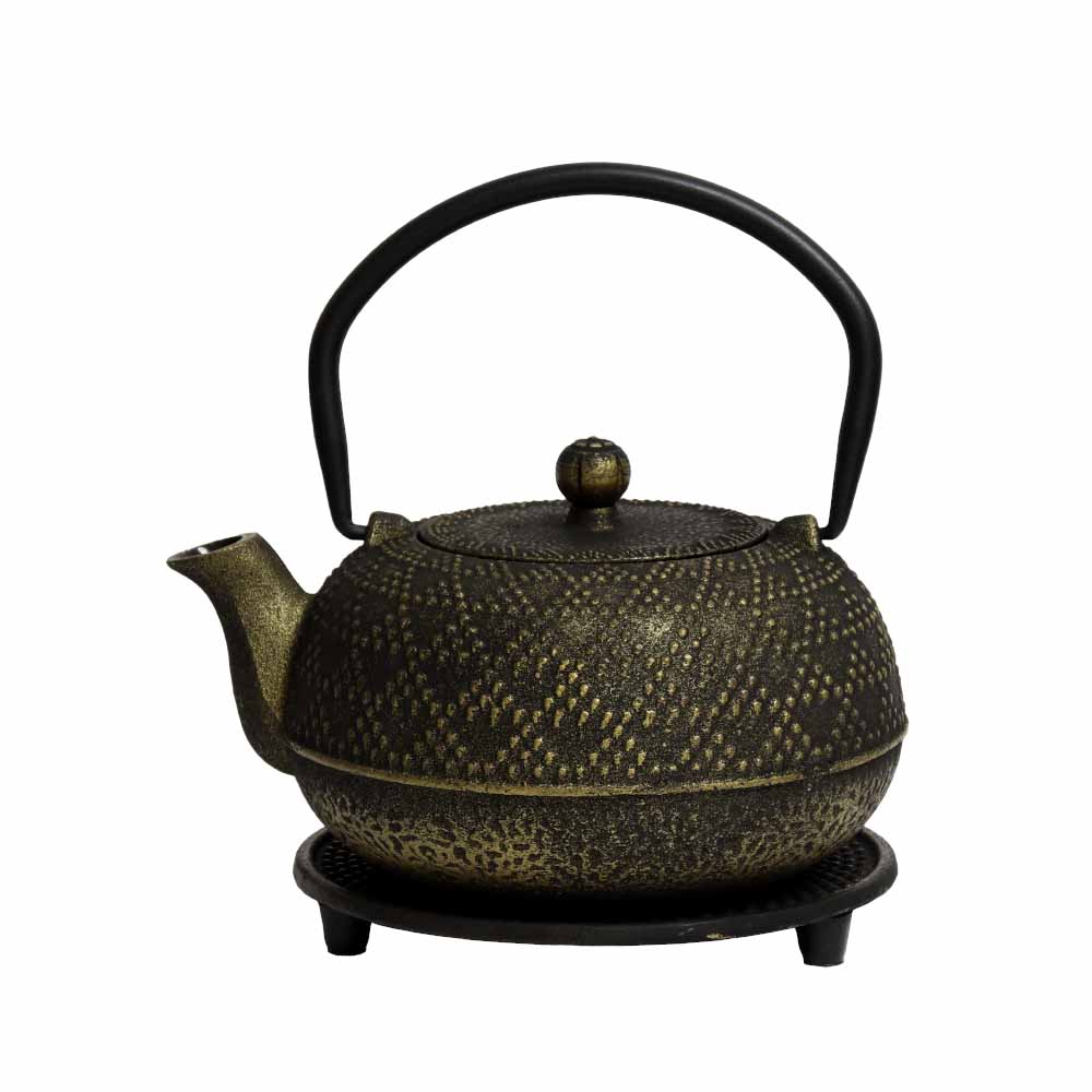 Teekanne aus Gusseisen mit Verzierungen 'Akita' - 700ml schwarz-gold