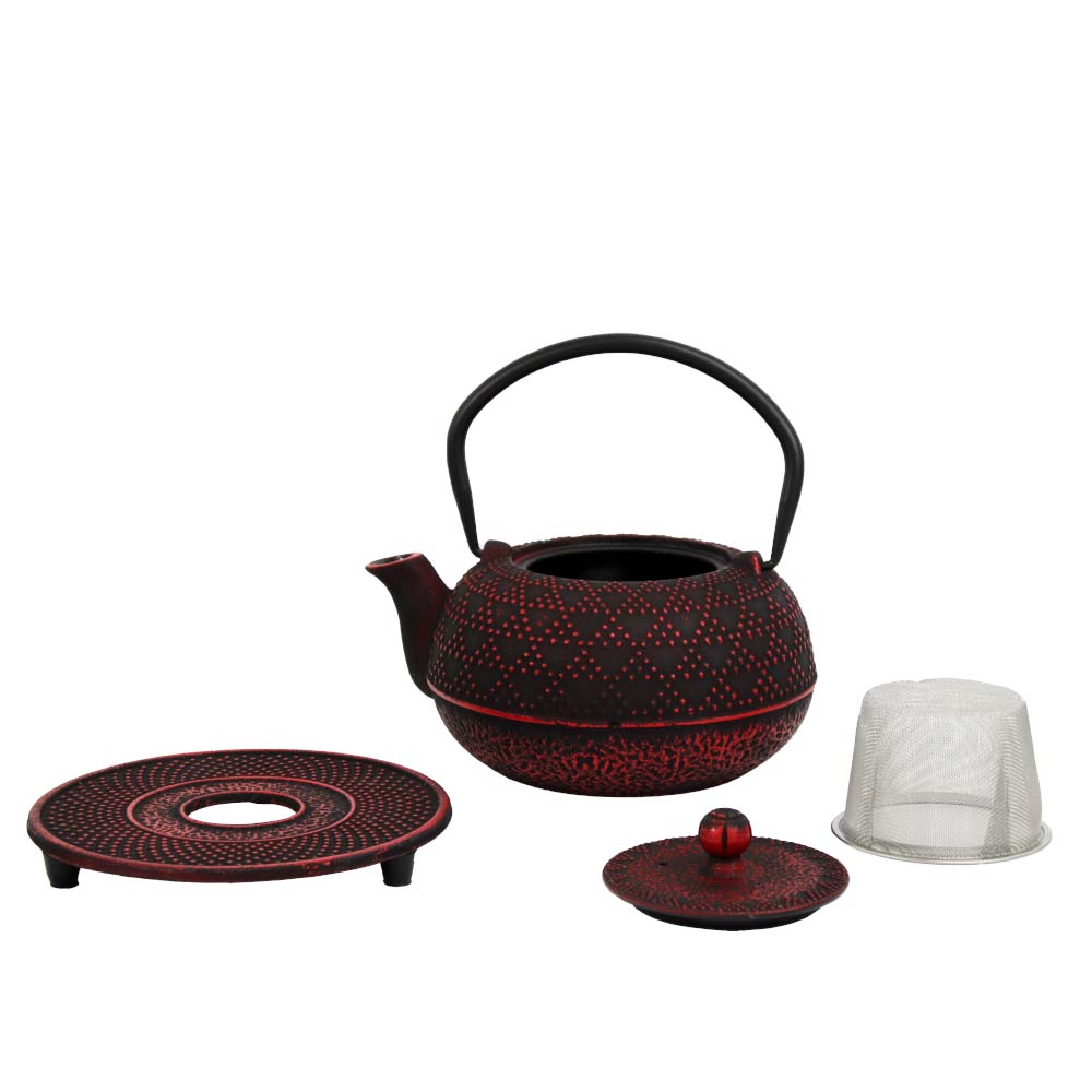 Teekanne aus Gusseisen mit Verzierungen 'Akita' (700ml) in Schwarz-Rot - Lieferumfang