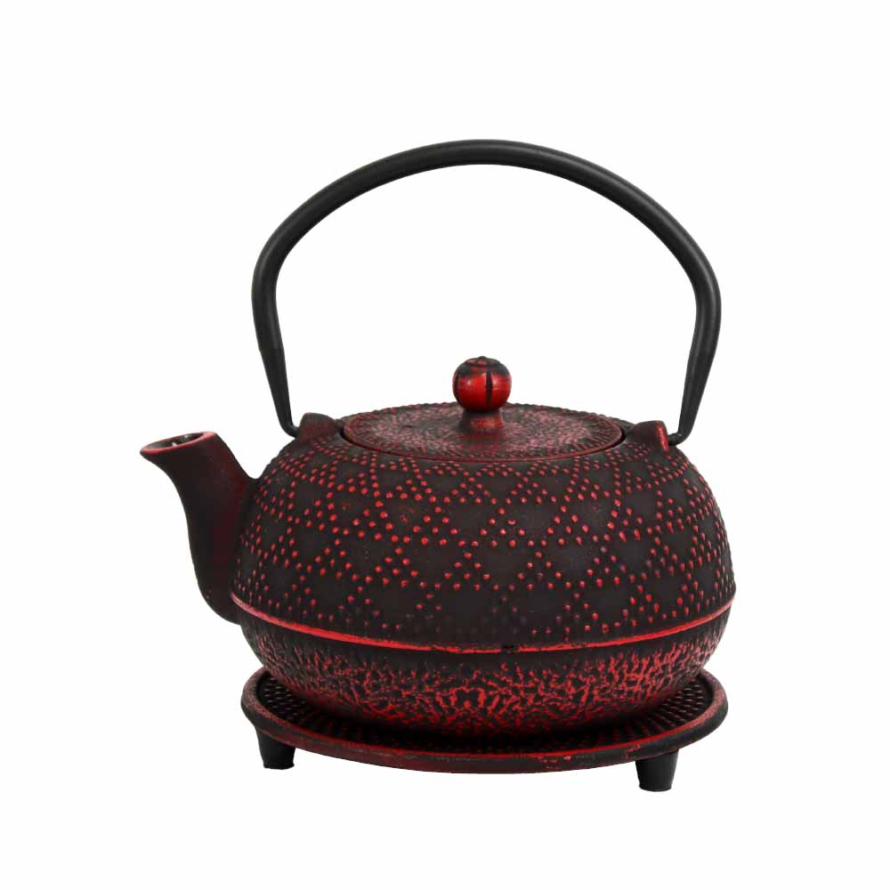 Teekanne aus Gusseisen mit Verzierungen 'Akita' (700ml) in Schwarz-Rot